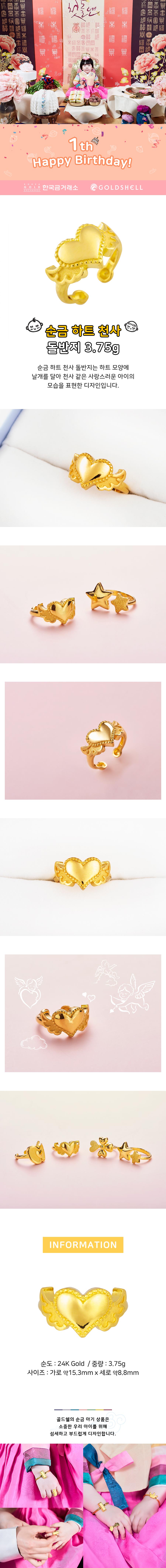 순금 하트 천사 돌반지 3.75g